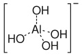 In the Bayer process[19] for the production of pure aluminium oxide from bauxite minerals this equilibrium is manipulated by careful control of temperature and alkali concentration. In the first phase, aluminium dissolves in hot alkaline solution as Al(OH)−