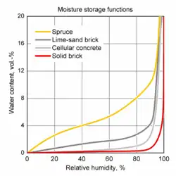 The amount of moisture held by hygroscopic materials is usually proportional to the relative humidity. Tables containing this information can be found in many engineering handbooks and is also available from suppliers of various materials and chemicals.