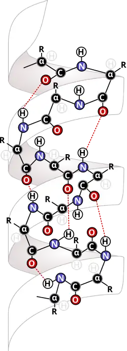 Intramolecular forces are extremely important in the field of biochemistry, where it comes into play at the most basic levels of biological structures. Intramolecular forces such as disulfide bonds give proteins and DNA their structure. Proteins derive their structure from the intramolecular forces that shape them and hold them together. The main source of structure in these molecules is the interaction between the amino acid residues that form the foundation of proteins.[7] The interactions between residues of the same proteins forms the secondary structure of the protein, allowing for the formation of beta sheets and alpha helices, which are important structures for proteins and in the case of alpha helices, for DNA.