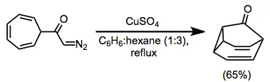 Intramolecular reactions of diazocarbonyl compounds include addition to carbon–carbon double bonds to form fused cyclopropanes and insertion into carbon–hydrogen bonds or carbon–carbon bonds.[1]