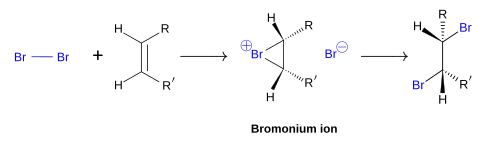 Proposed by H. P. Kaufmann in 1935, it consists in the bromination of the double bonds using an excess of bromine and anhydrous sodium bromide dissolved in methanol. The reaction involves the formation of a bromonium intermediate as follows:[7]