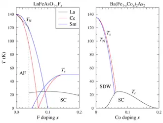 - ↑ Chu, Jiun-Haw; Analytis, James; Kucharczyk, Chris; Fisher, Ian (2009). "Determination of the phase diagram of the electron doped superconductor Ba(Fe1−xCox)2As2". Physical Review B. 79 (1): 014506. arXiv:0811.2463. Bibcode:2009PhRvB..79a4506C. doi:10.1103/PhysRevB.79.014506. S2CID 10731115.