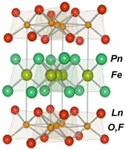 - 1111-type, with representative compounds LaFePO,[2] LaFeAsO,[3] SmFeAsO,[11] PrFeAsO,[12][13] and LaFeSiH.[14]