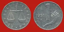 - ↑ Giovanni Calchera, "Le nuove monete metalliche della Repubblica Italiana" Archived 2016-04-04 at the Wayback Machine, in Annuario Numismatico Rinaldi, 1948 (in Italian).