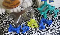 Joint clips (or Keck clips)[1] are used to prevent laboratory glassware joints from separating during a reaction process. They are used to secure the two sides together and are available in a variety of materials for different temperature and chemical environments.
