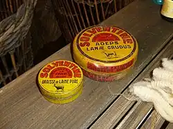 Lanolin (from Latin lāna 'wool', and oleum 'oil'), also called wool fat, wool yolk, wool wax, sheep grease, sheep yolk, or wool grease, is a wax secreted by the sebaceous glands of wool-bearing animals.[1] Lanolin used by humans comes from domestic sheep breeds that are raised specifically for their wool. Historically, many pharmacopoeias have referred to lanolin as wool fat (adeps lanae); however, as lanolin lacks glycerides (glycerol esters), it is not a true fat.[2][3] Lanolin primarily consists of sterol esters instead.[4] Lanolin's waterproofing property aids sheep in shedding water from their coats. Certain breeds of sheep produce large amounts of lanolin.