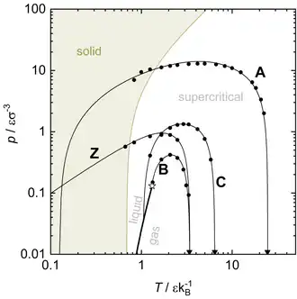 - 1 2 Smit, B. (1992), "Phase diagrams of Lennard-Jones fluids" (PDF), Journal of Chemical Physics, 96 (11): 8639–8640, Bibcode:1992JChPh..96.8639S, doi:10.1063/1.462271