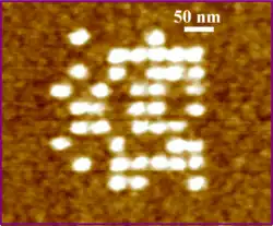 - ↑ Martinez, J; Martínez, RV; Garcia, R (2008). "Silicon Nanowire Transistors with a Channel Width of 4 nm Fabricated by Atomic Force Microscope Nanolithography". Nano Lett. 8 (11): 3636–3639. Bibcode:2008NanoL...8.3636M. doi:10.1021/nl801599k. PMID 18826289.