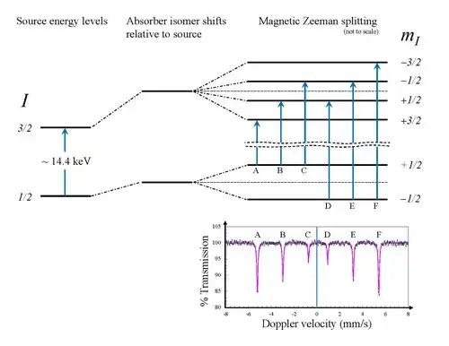 - 1 2 3 4 5 Mössbauer Spectroscopy Group, Royal Society of Chemistry (RSC) website, Introduction to Mössbauer Spectroscopy Part 2 Archived 2011-06-08 at the Wayback Machine Accessed June 3, 2010.