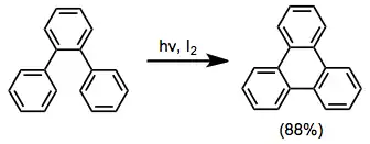 ortho-Terphenyl substrates cyclize to the corresponding triphenylenes in the presence of an oxidant, such as iodine. Oxygen is unsatisfactory because ring-opening to highly stabilized terphenyl is faster than oxidation when oxygen is used.[13]
