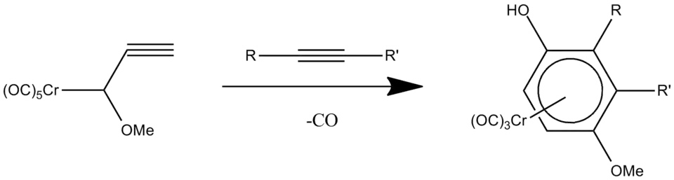 The Dötz reaction is a formal [3+2+1] cycloaddition of two alkynes, a carbene, and a carbonyl ligand to form a benzene ring.[12]