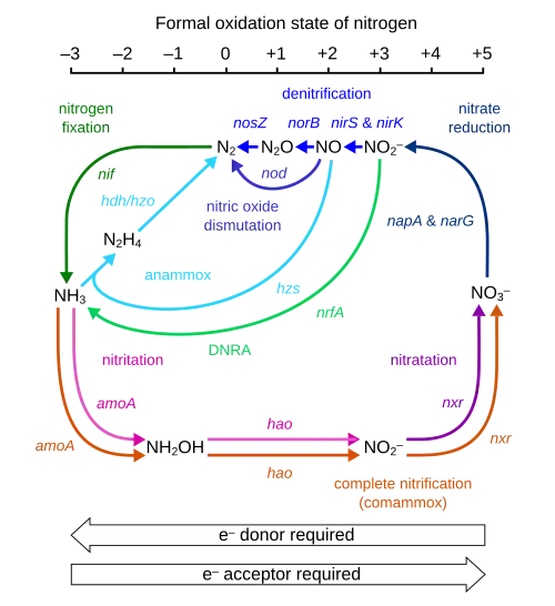 - ↑ Simon, Jörg; Klotz, Martin G. (2013). "Diversity and evolution of bioenergetic systems involved in microbial nitrogen compound transformations". Biochimica et Biophysica Acta (BBA) - Bioenergetics. 1827 (2): 114–135. doi:10.1016/j.bbabio.2012.07.005. PMID 22842521.