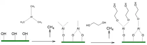- ↑ Lee Y, Yoon B, Cavanagh AS, George SM (December 2011). "Molecular layer deposition of aluminum alkoxide polymer films using trimethylaluminum and glycidol". Langmuir. 27 (24): 15155–64. doi:10.1021/la202391h. PMID 22029704.