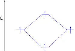 A molecular orbital diagram, or MO diagram, is a qualitative descriptive tool explaining chemical bonding in molecules in terms of molecular orbital theory in general and the linear combination of atomic orbitals (LCAO) method in particular.[1][2][3] A fundamental principle of these theories is that as atoms bond to form molecules, a certain number of atomic orbitals combine to form the same number of molecular orbitals, although the electrons involved may be redistributed among the orbitals. This tool is very well suited for simple diatomic molecules such as dihydrogen, dioxygen, and carbon monoxide but becomes more complex when discussing even comparatively simple polyatomic molecules, such as methane. MO diagrams can explain why some molecules exist and others do not. They can also predict bond strength, as well as the electronic transitions that can take place.