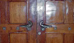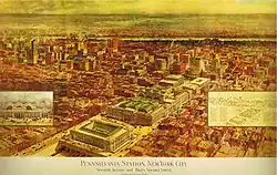 Monel was used for much of the exposed metal used in the interior of the Bryn Athyn Cathedral in Pennsylvania, religious seat of the General Church of the New Jerusalem. This included large decorative screens, doorknobs, etc.[1] Monel also has been used as roofing material in buildings such as the original Pennsylvania Station in New York City.[1]