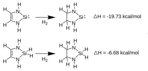 - 1 2 3 4 Denk, Michael; Green, Jennifer C.; Metzler, Nils; Wagner, Matthias (1994-01-01). "Electronic structure of a stable silylene: photoelectron spectra and theoretical calculations of Si(NRCHCHNR), Si(NRCH2CH2NR) and SiH2(NRCHCHNR)". Journal of the Chemical Society, Dalton Transactions (16): 2405. doi:10.1039/dt9940002405. ISSN 0300-9246.