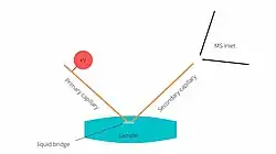 Nanospray desorption electrospray ionization (nano-DESI) is an ambient pressure ionization technique used in mass spectrometry (MS) for chemical analysis of organic molecules.[1] In this technique, analytes are desorbed into a liquid bridge formed between two capillaries and the sampling surface.[2] Unlike desorption electrospray ionization (DESI), from which nano-DESI is derived, nano-DESI makes use of a secondary capillary, which improves the sampling efficiency.[1]