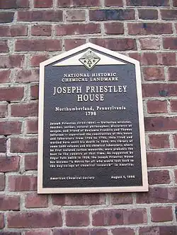 Plaque noting National Historic Chemical Landmark status at the Joseph Priestley House.