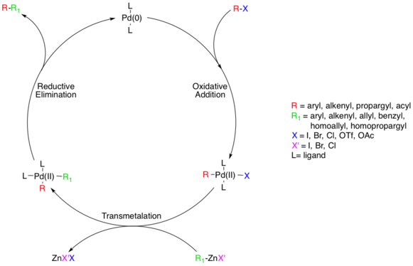 - Ar–Pd–Ar′ + Ar′–Zn–X → Ar′–Pd–Ar′ + Ar–Zn–X