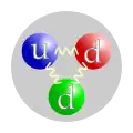 ![]() The quark content of the neutron. The color assignment of individual quarks is arbitrary, but all three colors must be present. Forces between quarks are mediated by gluons. | |