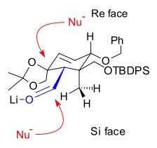 Stereochemistry of addition to 4.2. The Re face was preferred.