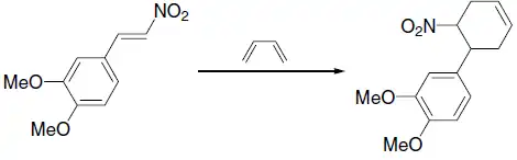 - Nitroalkene acting as an activated dienophile toward butadiene in a Diels-Alder cycloaddition:[1][10]