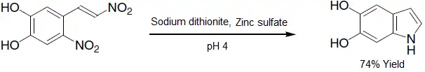 - ↑ Novellino, Luisa; d'Ischia, Marco & Prota, Giuseppe (1999). "Expedient Synthesis of 5,6-Dihydroxyindole and Derivatives via an Improved Zn(II)-Assisted 2,β-Dinitrostyrene Approach". Synthesis. 1999 (5): 793–796. doi:10.1055/s-1999-3469.