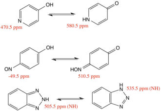 15N NMR is used in a wide array of areas from biological to inorganic techniques. A famous application in organic synthesis is to utilize 15N to monitor tautomerization equilibria in heteroaromatics because of the dramatic change in 15N shifts between tautomers.[1]