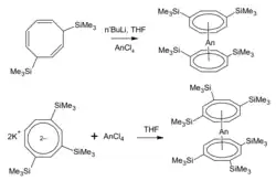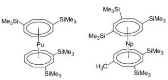 - ↑ Rausch J, Apostolidis C, Walter O, Lorenz V, Hrib CG, Hilfert L, Kühling M, Busse S, Edelmann FT (2015). "One ligand fits all: lanthanide and actinide sandwich complexes comprising the 1, 4-bis (trimethylsilyl) cyclooctatetraenyl (= COT′′) ligand". New Journal of Chemistry. 39 (10): 7656–66. doi:10.1039/c5nj00991j.