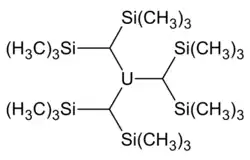In 1989, a group finally synthesized a homoleptic complex with trimethylsilyl groups: U[CH(SiMe3)2]3. Since then, variants of higher coordination numbers such as [Li(TMEDA)]2[UMe6] have also been synthesized.[1]