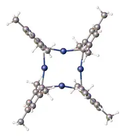 - ↑ Meyer, Edouard Marc.; Gambarotta, Sandro.; Floriani, Carlo.; Chiesi-Villa, Angiola.; Guastini, Carlo. (1989). "Polynuclear Aryl Derivatives of Group 11 metals. Synthesis, Solid State-Solution Structural Relationship, and Reactivity with Phosphines". Organometallics. 8 (4): 1067–1079. doi:10.1021/om00106a031.