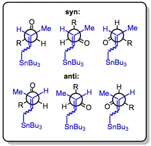 The addition of an organostannane to carbonyl group is one of the most common and efficient methods for the production of contiguous, oxygen-containing stereocenters in organic molecules. Since many naturally-occurring polymers contain this stereochemical motif, such as polypropionate and polyacetate, organostannane addition has been studied extensively by natural products chemists as a synthetically and commercially-important reaction.[2][3]