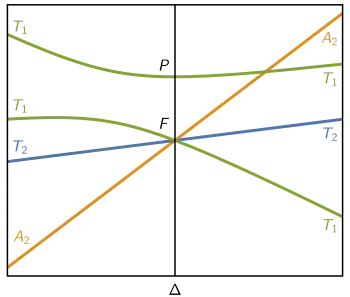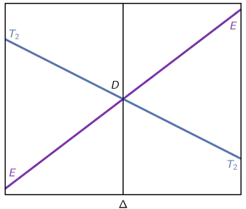 In an Orgel diagram, lines with the same Russell–Saunders terms will diverge due to the non-crossing rule, but all other lines will be linear. Also, for the D Orgel diagram, the left side contains d1 and d6 tetrahedral and d4 and d9 octahedral complexes. The right side contains d4 and d9 tetrahedral and d1 and d6 octahedral complexes. For the F Orgel diagram, the left side contains d2 and d7 tetrahedral and d3 and d8 octahedral complexes. The right side contains d3 and d8 tetrahedral and d2 and high spin d7 octahedral complexes.