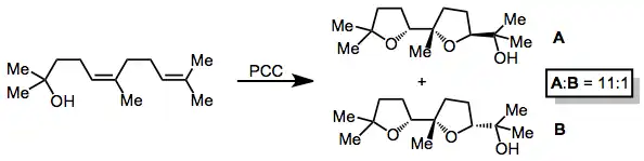 Oxidative cyclizations of olefinic alcohols to cyclic ethers may occur via [3+2], [2+2],[1] or epoxidation mechanisms. Insights into the mechanism is provided by structure-reactivity, implicating direct epoxidation by the chromate ester.[1] Subsequent epoxide opening and release of chromium leads to the observed products.