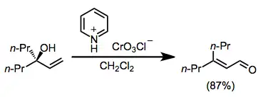 Enones can be synthesized from tertiary allylic alcohols through the action of a variety of chromium(VI)-amine reagents, in a reaction known as the Babler oxidation. The reaction is driven by the formation of a more substituted double bond. (E)-Enones form in greater amounts than (Z) isomers because of chromium-mediated geometric isomerization.[5][1]