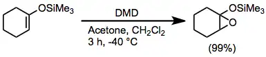 Epoxidations of electron-rich double bonds yield intermediates of Rubottom oxidation. Upon hydrolysis, these siloxyepoxides yield α-hydroxyketones.[1]