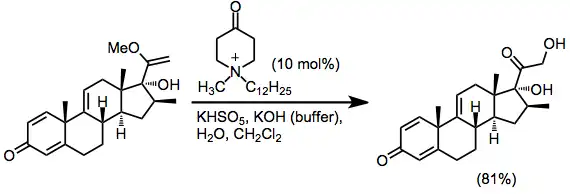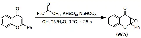 Chiral ketones react with oxone to give chiral dioxiranes. This fact underpins enantioselective epoxidations.[14] A popular implementation is the Shi epoxidation, which uses a fructose-derived chiral ketone.