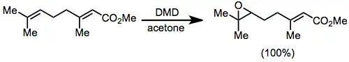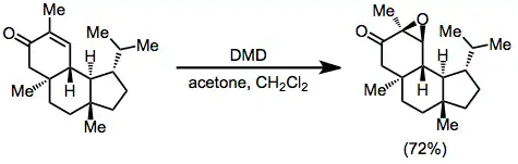 Diastereoselective DMD epoxidation of a chiral unsaturated ketone was applied to the synthesis of verrucosan-2β-ol.[6]