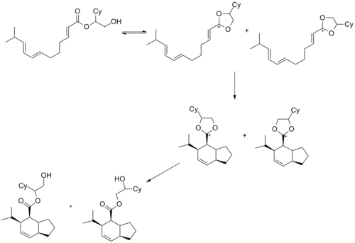 - ↑ Roush, M.; Gillis, P.; Essenfeld, A. (1984), "Hydrofluoric acid catalyzed intramolecular Diels–Alder reactions", Journal of Organic Chemistry, 49 (24): 4674–4682, doi:10.1021/jo00198a018