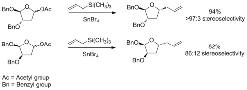 - ↑ Kanwar, S.; Trehan, S. (2005), "Acetate aldol reactions of chiral oxocarbenium ions", Tetrahedron Letters, 46 (8): 1329–1332, doi:10.1016/j.tetlet.2004.12.116