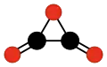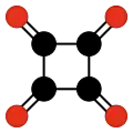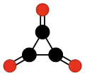 Another family of oxocarbons that has attracted special attention are the cyclic radialene-type oxocarbons CnOn or (CO)n.[27] They can be regarded as cyclic polymers of carbon monoxide, or n-fold ketones of n-carbon cycloalkanes. Carbon monoxide itself (CO) can be regarded as the first member. Theoretical studies indicate that ethylene dione (C2O2 or O=C=C=O) and cyclopropanetrione C3O3 do not exist.[17][18] The next three members — C4O4, C5O5, and C6O6 — are theoretically possible, but are expected to be quite unstable,[18] and so far they have been synthesized only in trace amounts.[28][29]