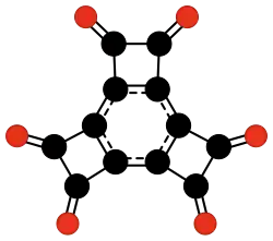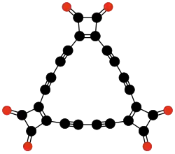 • C24O6, a cyclic trimer of the biradical 3,4-dialkynyl-3-cyclobutene-1,2-dione -C≡C-(C4O2)-C≡C- (Rubin and others, 1990);[45]