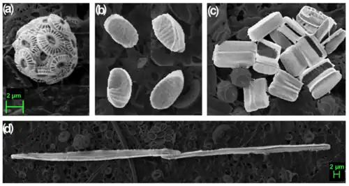 - ↑ Monteiro, Fanny M.; Bach, Lennart T.; Brownlee, Colin; Bown, Paul; Rickaby, Rosalind E. M.; Poulton, Alex J.; Tyrrell, Toby; Beaufort, Luc; Dutkiewicz, Stephanie; Gibbs, Samantha; Gutowska, Magdalena A.; Lee, Renee; Riebesell, Ulf; Young, Jeremy; Ridgwell, Andy (2016). "Why marine phytoplankton calcify". Science Advances. 2 (7): e1501822. Bibcode:2016SciA....2E1822M. doi:10.1126/sciadv.1501822. PMC 4956192. PMID 27453937.