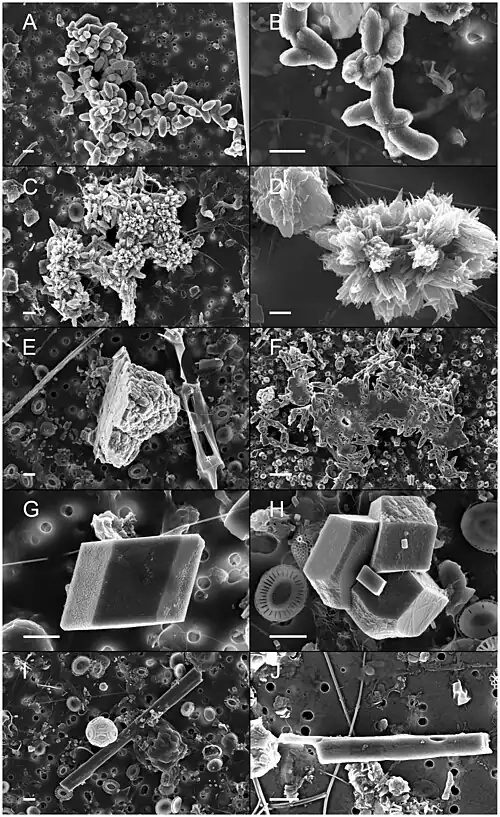 Material was copied from this source, which is available under a Creative Commons Attribution 4.0 International License. - ↑ Heldal, Mikal; Norland, Svein; Erichsen, Egil S.; Thingstad, T. Frede; Bratbak, Gunnar (2012). "An Unaccounted Fraction of Marine Biogenic CaCO3 Particles". PLOS ONE. 7 (10): e47887. Bibcode:2012PLoSO...747887H. doi:10.1371/journal.pone.0047887. PMC 3479124. PMID 23110119.