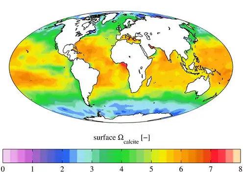 - ↑ Balch, W. M.; Gordon, Howard R.; Bowler, B. C.; Drapeau, D. T.; Booth, E. S. (2005). "Calcium carbonate measurements in the surface global ocean based on Moderate-Resolution Imaging Spectroradiometer data". Journal of Geophysical Research. 110 (C7): C07001. Bibcode:2005JGRC..110.7001B. doi:10.1029/2004jc002560.
