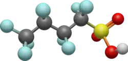 Perfluorobutanesulfonic acid (PFBS) is a PFAS chemical compound having a four-carbon fluorocarbon chain and a sulfonic acid functional group. It is stable and unreactive because of the strength of carbon–fluorine bonds. It can occur in the form of a colorless liquid or a corrosive solid.[1] Its conjugate base is perfluorobutanesulfonate (also called nonaflate) which functions as the hydrophobe in fluorosurfactants.