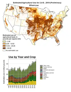 - ↑ US Geological Survey (2021-10-12). "Estimated Agricultural Use for 2,4-D, 2019". Retrieved 2021-12-27.