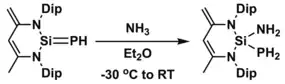 Using a fragile zwitterionic "half-parent" phosphasilene L'Si=PH (L' = CH[(C=CH2)CMe(NAr)2], Ar = 2,6-iPr2C6H3), Driess and coworkers demonstrated that an unusual N-H activation reactivity can be achieved by the Si=P moiety in ammonia, affording L'Si(NH2)PH2 species.[23] This represent a rare example of catalyst-free 1,2-hydroamination reaction that's been reported in heavier alkene analogues.[2][33][34]