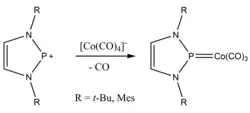 N-heterocyclic phosphenium (NHP) have also been reported.[5] Reaction of PI3 with the α-diimine yields the NHP cation by reduction of the diimine and oxidation of iodine.