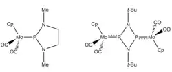 2". Journal of the American Chemical Society. 103 (25): 7406–7413. doi:10.1021/ja00415a002. ISSN 0002-7863. - ↑ Nakazawa, Hiroshi; Buhro, William E.; Bertrand, Guy; Gladysz, J. A. (1984-10-01). "Reactions of phosphorus electrophiles with [(η5-C5Me5)Fe(CO)2]−; spectroscopic evidence for a phosphinidene complex". Inorganic Chemistry. 23 (22): 3431–3433. doi:10.1021/ic00190a001. ISSN 0020-1669.